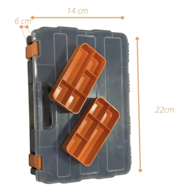 Caja tapa cristal marca Conolon, de la tradicional y prestigiosa marca francesa legitima cierre con bisagra plastica, interior compartimentada 9 divisiones y 2 bandejas compartimentada desmontable que otorga 5 compartimintos extras cada una, imprescindible para todo pescador deportivo