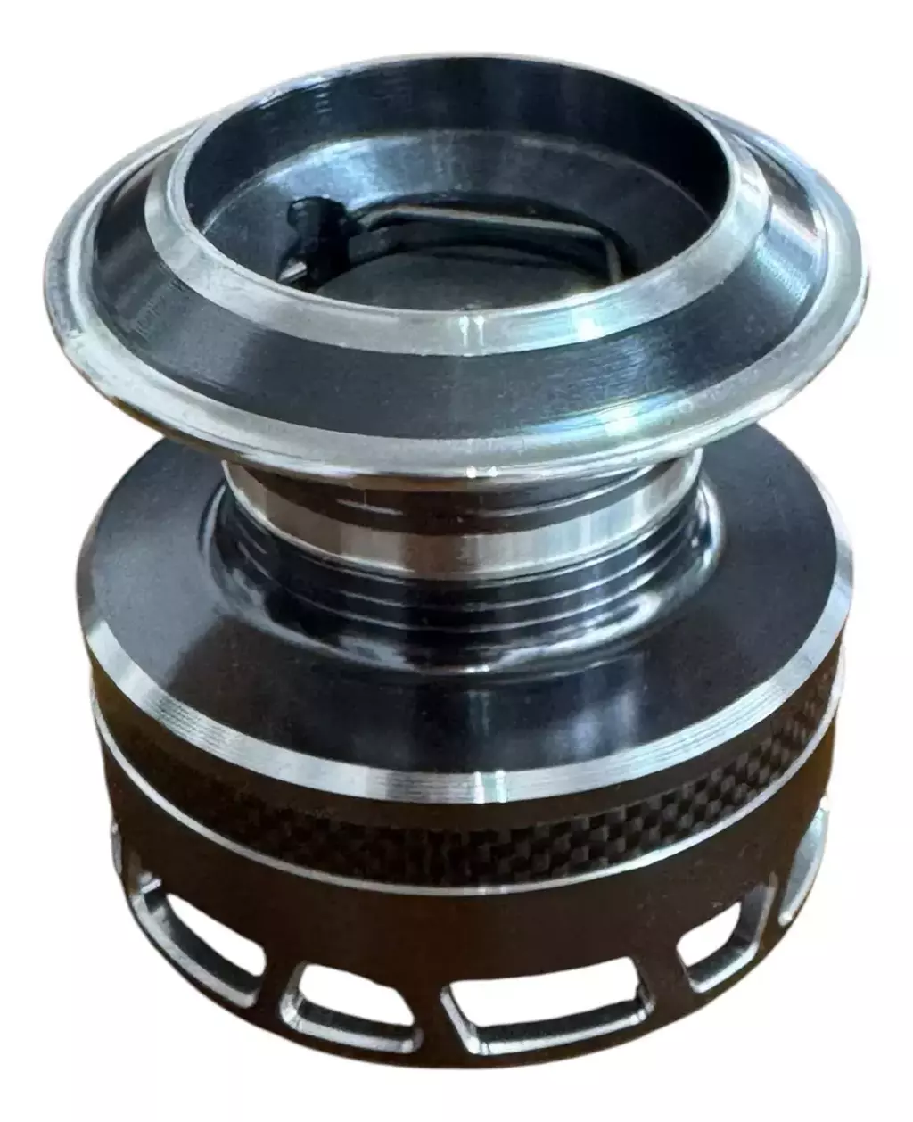 Casco como carretel carbono y metalico